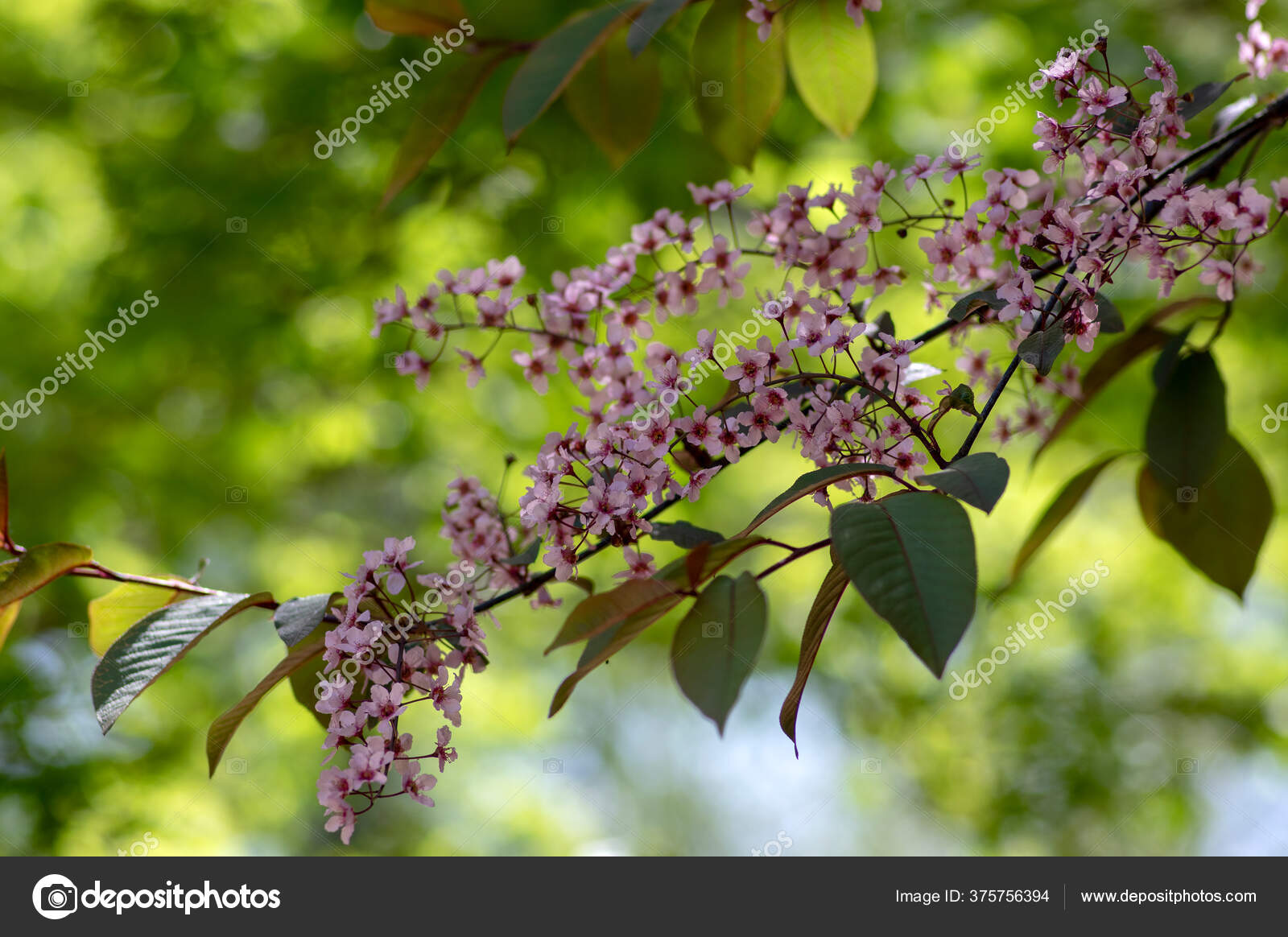 Prunus Padus Colorata Pink Flowering Cultivar Bird Cherry Hackberry Tree Stock Photo By C Ivusakzkrabice 375756394